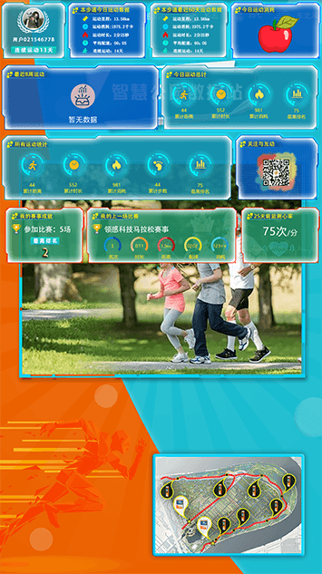 智慧大屏日常除了作为运动展示界面外同样支持公益广告宣传,民生信息发布等功能,也可用作商业广告投放,带来一定的运营收益。所有功能都可根据运营方实际需求定制,高效利用资源。