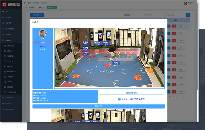 围绕“智慧体育”概念打造的视觉化运动测量设备。任意一套设备支持 开合跳、跳绳、立定跳远、仰卧起坐、